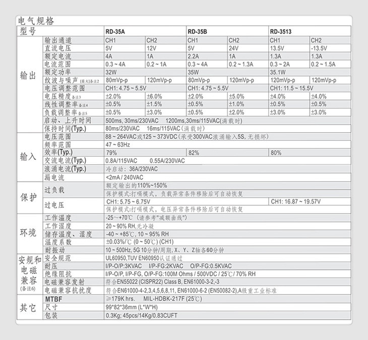 平均无故障时间 ≥17.9万小时,MIL-HDBK-217F(25℃)