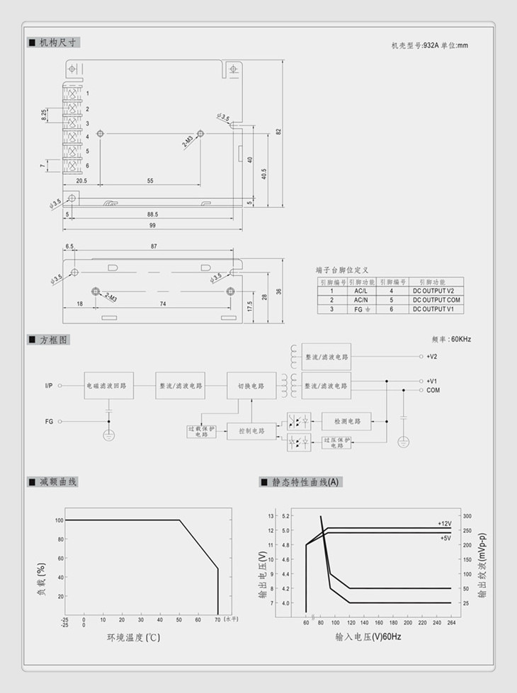过载保护 过电流点在110%~150%,自动侦测自动复原